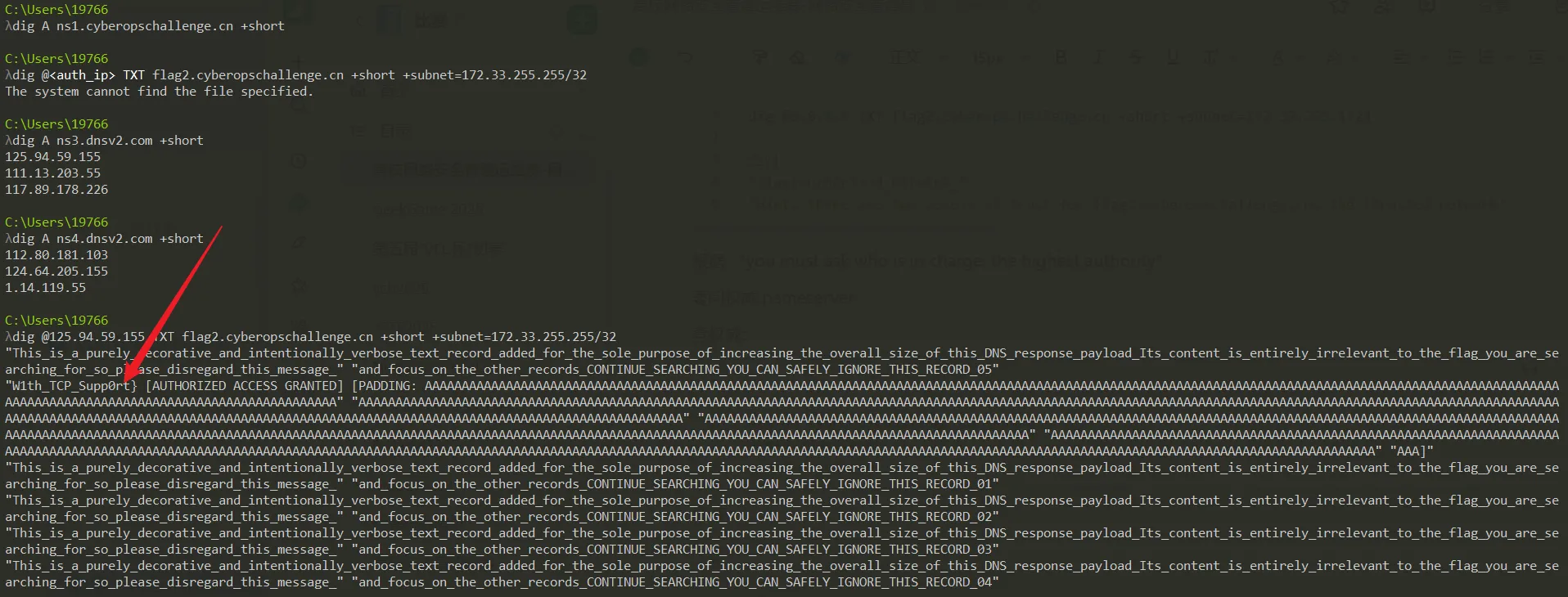 2dig @125.94.59.155 TXT flag2.cyberopschallenge.cn +short +subnet=172.33.255.255/32