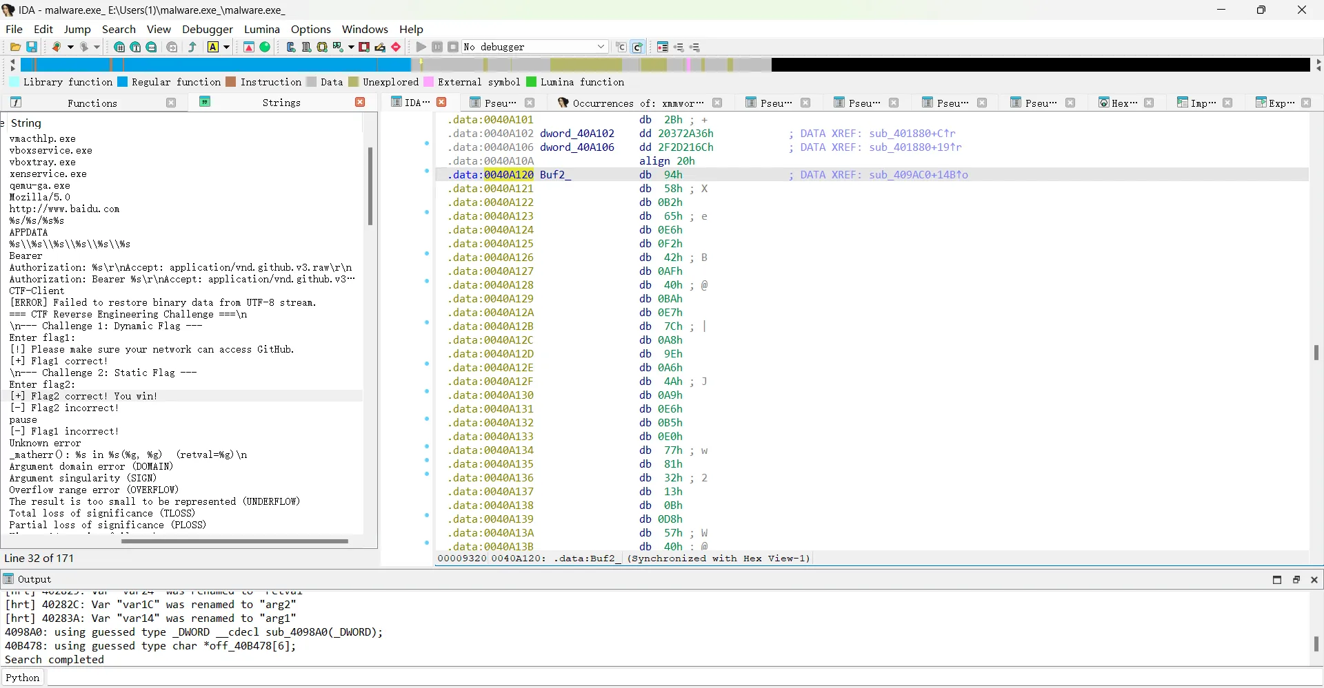 flag1没搞出来,flag2将关键函数和值都找到,搓脚本解密(注意Buf2密文数据要提取完整):