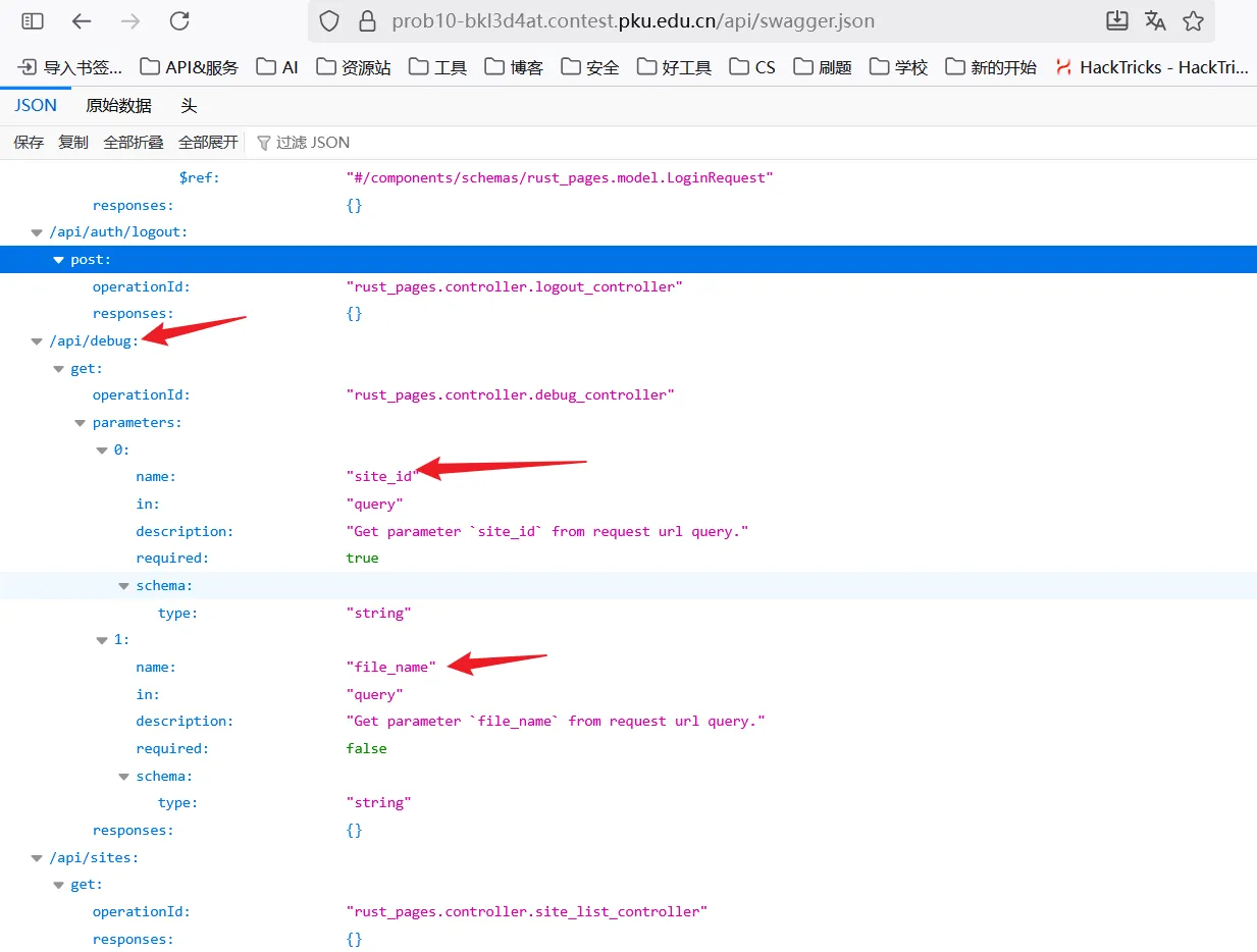访问拿到关键得接口/api/debug和关键参数site_id、file_name,经过测试,存在目录遍历和任意文件读取。